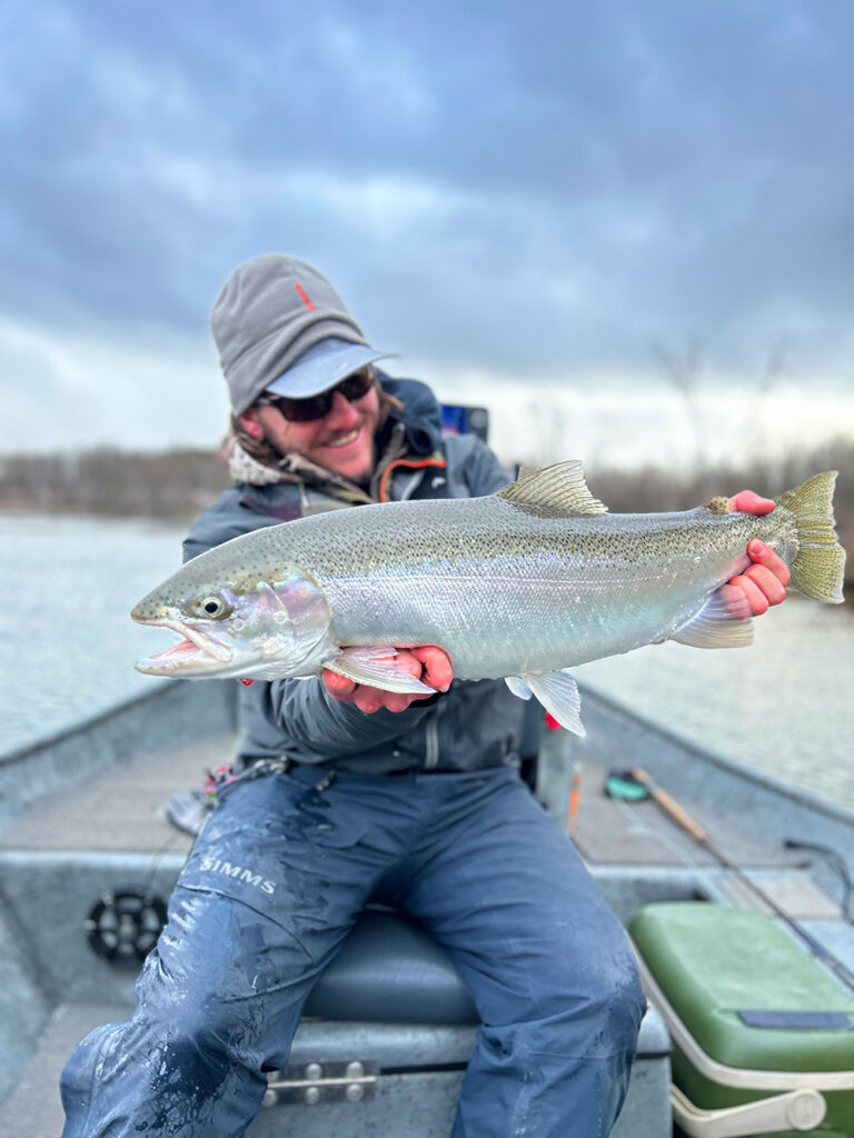 I personally have been fishing several rivers as of lately and my last day on the Big Man was a couple days ago. I saw more fish in the water with my eyes than I have all season just because they’ve been so come or go in quick manner this year. We hooked a handful of biters and then it seemed like a lot more of the fish had a spawning focus of mindset…. a good time to move on and look for willing fish and let them do their thing. Still wasn’t a lot of fish, but if you knew where to look you could talk a few males into grabbing your offering. I bet a few chromers will come up each day, but it will take a well knowledgeable river guy to find them. This rise in the water the big man is having from the recent heavy rain will push the tail end of the run up and flush the old ones out and once the river drops, I’d expect a day or two of okay fishing. Other than that, I don’t see steelhead being worth much more than a half day guided trip at this point unless you go half day trout and half day steelhead to mix it up.
